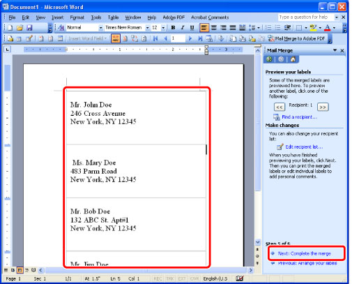 이제 인쇄된 주소 레이블을 봉투 등에 사용할 수 있습니다.