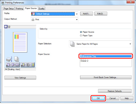 [A4]를 선택하고 → [확인]을 누릅니다.