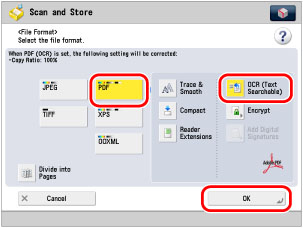 [PDF] → [OCR (문자인식)]을 선택하고 → [확인]을 누릅니다.