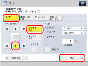 원고를 원고대 또는 피더에 놓고 → 메인 메뉴 화면의 [복사]를 누릅니다.