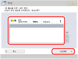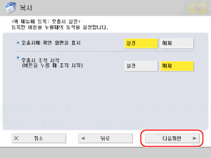설정을 확인하고 → [다음화면]을 누릅니다.