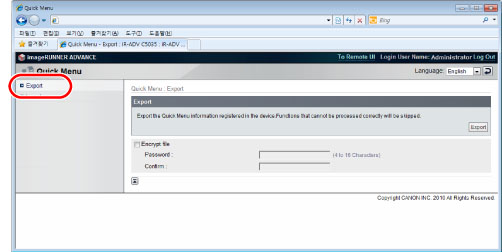 [내보내기]를 클릭하여 내보내기 페이지를 표시합니다.