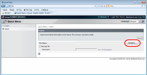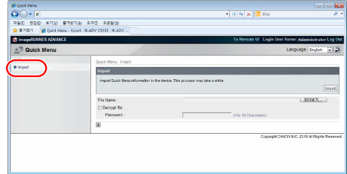 [가져오기]를 클릭하여 가져오기 페이지를 표시합니다.