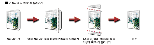 책자의 가장자리 또는 세 변을 재단하려는 경우.