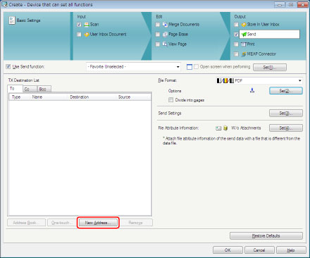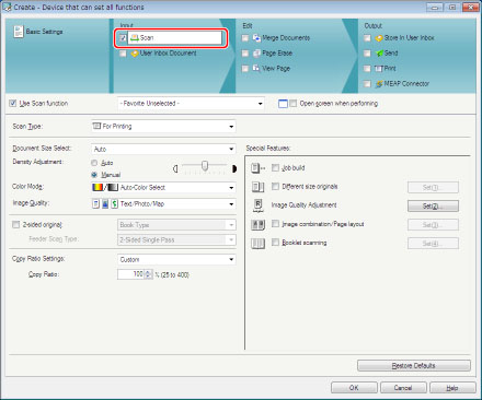 iW Function Flow와 함께 설치된 기기만 등록합니다.