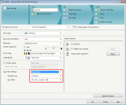 [복사 비율 설정]에서 [정형변배]를 선택하고 → [크기 그룹]에서 [인치 단위]를 선택하고 → [배율]에서 [70%(A3 -> A4, B4 -> B5)]를 선택합니다.