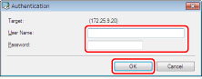 [호스트명]에 지정한 컴퓨터에 로그인할 때 사용하는 사용자 이름과 비밀번호를 [사용자] 및 [비밀번호]에 입력합니다.