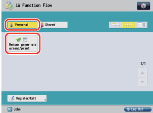[개인] → [용지 크기 축소/송신/인쇄]를 누릅니다.