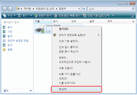 ](시작) → [제어판] → [프린터]를 클릭합니다.