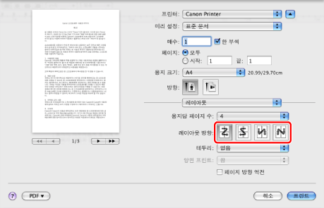 한 장에 여러 페이지를 인쇄할 수 있습니다.