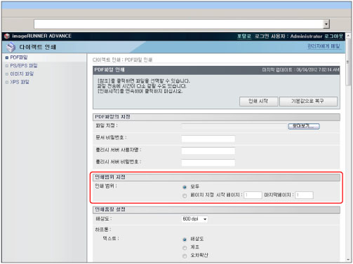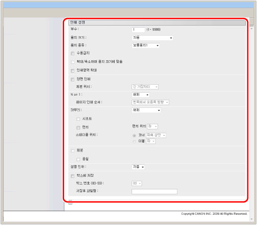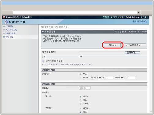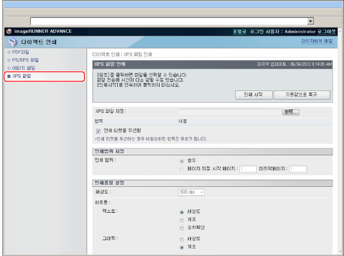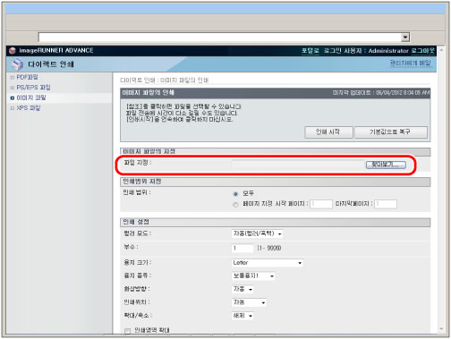 URL을 지정하여 인쇄하려면 [관리설정] (설정/등록)의 [리모트 UI]에서 [참조 인쇄 사용]을 '설정'으로 지정해야 합니다.