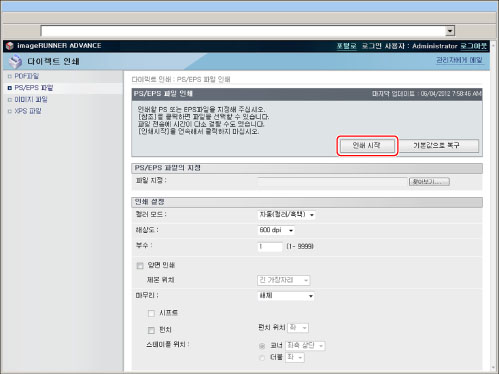 파일이 전송될 때 [인쇄 시작]을 반복해서 클릭하지 마십시오. 파일을 전송하는 데 약간의 시간이 소요됩니다. 그러나, 전송 중 반복해서 클릭할 경우 파일이 손상되거나 전송이 되지 않을 수 있습니다.