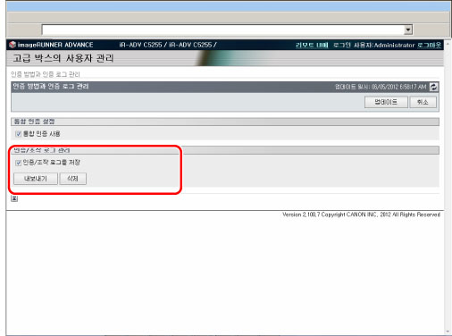 캐논에서는 인증 로그 관리 사용 또는 사용 불가능으로 인해 발생하는 어떠한 손해에 대해서도 책임을 지지 않습니다.
