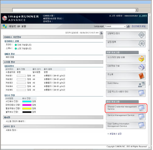 사용 중인 로그인 서비스 또는 기타 서비스가 통합 인증을 지원하는지에 관한 정보는 각 지역 캐논 공식 대리점에 문의하십시오.