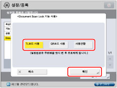 코드 사용을 위한 설정은 선택한 유형의 코드가 기입된 문서에만 효력이 있습니다. 예를 들어, Document Scan Lock 정보 모드를 위한 TL 코드 사용을 설정하면 QR 코드에 복사 방지를 위한 Document Scan Lock 정보가 기입되어 있어도 QR 코드를 사용하여 문서를 사용하도록 일반 사용자에게 제약을 가하지 않습니다.