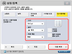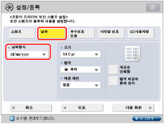문자 입력에 대해서는 "터치 패널 화면에서 문자 입력"을 참고하십시오. [기능 설정](설정/등록)의 [페이지번호 인쇄/스탬프의 문자열 등록]에 등록된 문자가 있을 경우 리스트에서 문자를 선택할 수 있습니다.