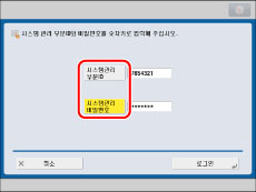 시스템 관리 비밀번호를 잊지 않도록 하십시오. 시스템 관리 비밀번호를 잊은 경우, 가까운 Canon 공인 대리점에 문의하십시오.