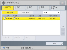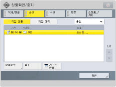 [송신], [작업 상황], [송신]을 기본 상황확인/중지 화면으로 설정하는 경우: