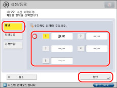 (숫자 키)를 사용하여 종료 시각을 입력하고 → [확인]을 누릅니다.|
