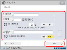 개별 박스에 대해 이러한 설정이 이전에 지정된 경우 각 박스에 대한 비밀번호 설정과 상관 없이 [기능 설정](설정/등록)의 [박스 일괄설정]에서 [파일 자동삭제까지의 시간] 및 [프린터 드라이버로부터 저장시 인쇄]를 지정할 수 있습니다. 그러나 [박스 일괄설정]을 사용한 후 별도로 각 박스의 설정을 업데이트하는 경우 업데이트된 설정은 [박스 일괄설정]으로 지정된 설정보다 우선합니다. ("박스 일괄 설정 지정" 참고)