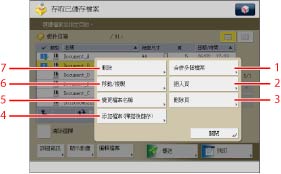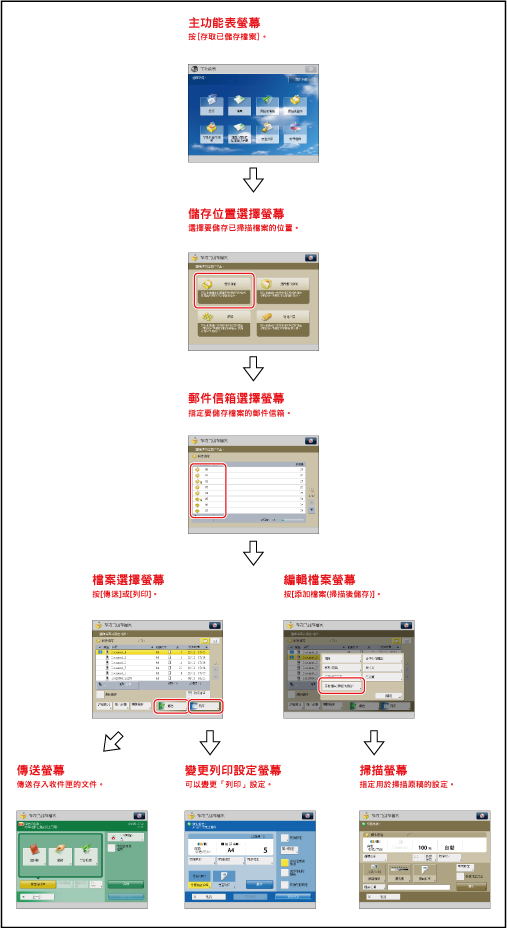 有關[添加檔案(掃描後儲存)]的操作步驟和操作「掃描」螢幕的說明,請參閱「添加檔案(掃描後儲存)」和「掃描後儲存操作流程」。