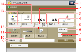 有關[添加檔案(掃描後儲存)]的操作步驟和操作「掃描」螢幕的說明,請參閱「添加檔案(掃描後儲存)」和「掃描後儲存操作流程」。