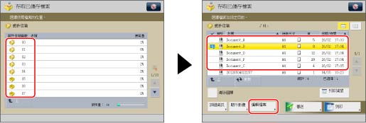 若創建檔案時沒有指定名稱,本機器會自動使用創建檔案時的年、月、日和時間為檔案指定名稱。例如,2012年1月15日下午1點35分41秒創建的合併檔案名稱將是<20120115133541>。