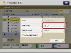 若選擇了多個檔案並按[插入頁],則所選(加亮)檔案成為插入的目標檔案。