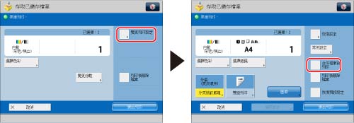若使用「合併檔案後列印」模式合併和列印多個檔案,則會使用「存取已儲存檔案」的預設設定而不使用檔案各自的設定來列印這些檔案。但是,不會變更或刪除每個檔案的設定,並且保持創建此檔案時的設定。
