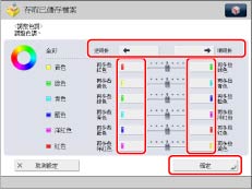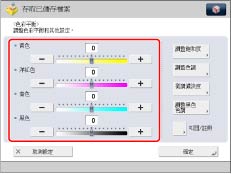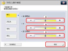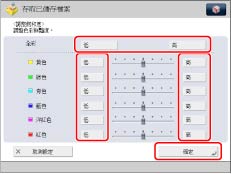 若使用「全彩」模式列印從原稿台玻璃/送稿機掃描的郵件信箱文件,可以在[全彩列印逼真化設定]中變更色調。(請參閱「使用全彩列印創建更加鮮豔的色彩」)