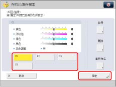 若沒有輸入任何字元就按[確定],則按鍵名稱會恢復為現行名稱(預設為C1到C4)。