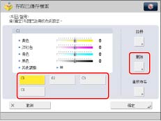 不會刪除按鍵名稱。有關變更按鍵名稱的說明,請參閱「命名色彩平衡鍵」。