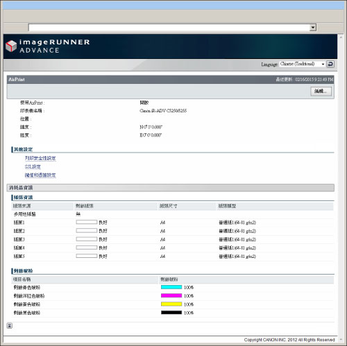 可以變更用於SSL的鍵值和憑證。(請參閱「組態使用SSL和認證列印的設定」)
