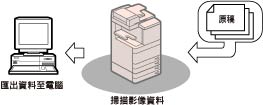 利用「網路掃描」功能可以將imageRUNNER ADVANCE C5255/C5250作為傳統掃描器使用。可以使用本機器掃描文件,然後在電腦正在使用的應用程式中讀取該資料。可以使用600×600 dpi解析度掃描最大尺寸為A3的影像。