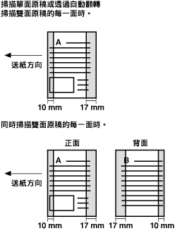 若掃描不同尺寸的原稿時未設定「不同尺寸原稿」模式或選擇非標準紙張尺寸作為紙張尺寸,則本機器可能無法偵測到原稿是彩色還是黑白。