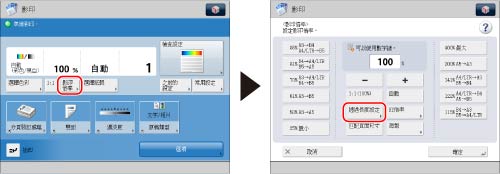若不想變更水平和垂直方向的影印倍率,請選擇[XY相同倍率]。要變更影印倍率,選擇[XY單獨]。