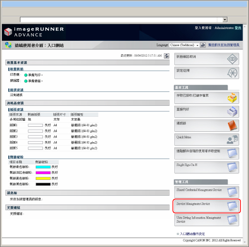 在「遠端使用者介面」的入口網站頁面上,按一下[Service Management Service](服務管理服務)。