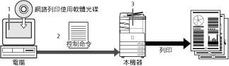 使用印表機驅動程式將要列印的資料轉換為控制命令。