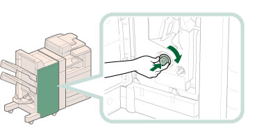 1. 向右轉動下輸送導板上的手柄直到停止,然後將其向右傾斜。