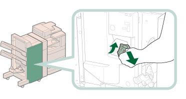 關閉蓋板後,裝訂機單元可能會自動執行「空」裝訂操作以定位裝訂針。