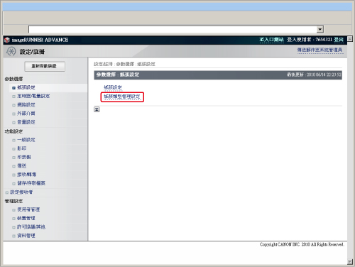 根據紙張類型的註冊位置或紙張類型的重量,可以使用下拉清單排序清單。