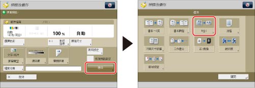 利用該模式,可以掃描多頁原稿或雙面原稿並將其排列到一張紙上。可以選擇將2、4或8頁已掃描原稿排列到一張紙上。也可以設定雙面列印,以及變更影像的版面和順序。