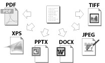 可以傳送多種檔案格式的文件,包括PDF、XPS、OOXML(pptx/docx)、JPEG和TIFF。這樣,使用者可以根據文件用途和接收者的文件操作環境自由選擇最適合的文件傳送方式。