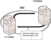 本機器可以作為用戶端機器存取網路上的伺服器機器以從其「通訊錄」搜尋/指定接收者。