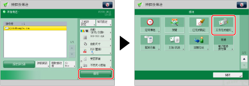若要傳送工作完成通知,需要預先將電子郵件位址儲存在「本機通訊錄」或單鍵按鈕中。