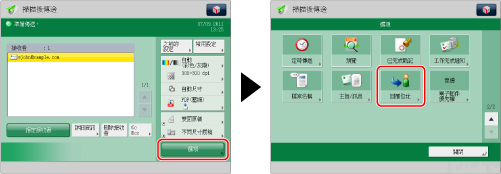 若本機器已設定登入服務,並且[指定授權使用者的位址為回覆位址]設定為「開啟」,則登入使用者的電子郵件位址將顯示為回覆位址。