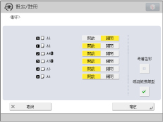 若設定為「開啟」,會套用在「根據色彩指定紙匣自動選擇」中指定的設定。若彩色影印和黑白影印使用不同的紙張,則指定的紙張來源僅與「自動紙張選擇」和「自動紙匣切換」同時使用時才可用。