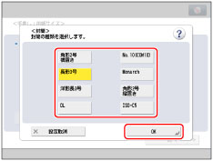 スライドガイドの調整を促す画面が表示されたときは、スライドガイドの幅を調節してサイズを設定したあと、[OK)]を押してください。