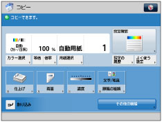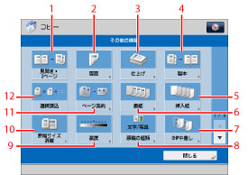 その他の機能のショートカットです。デフォルトでは[仕上げ]、[両面]、[濃度]、[原稿の種類]が設定されています。