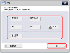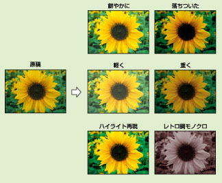 画質をニュアンスで選んでワンタッチで変更し、コピーできます。画質は、次の6 種類があります。